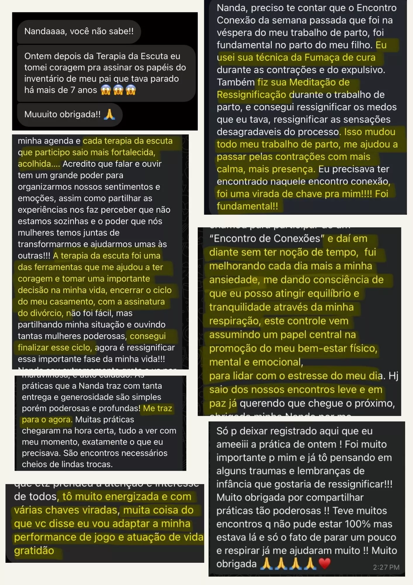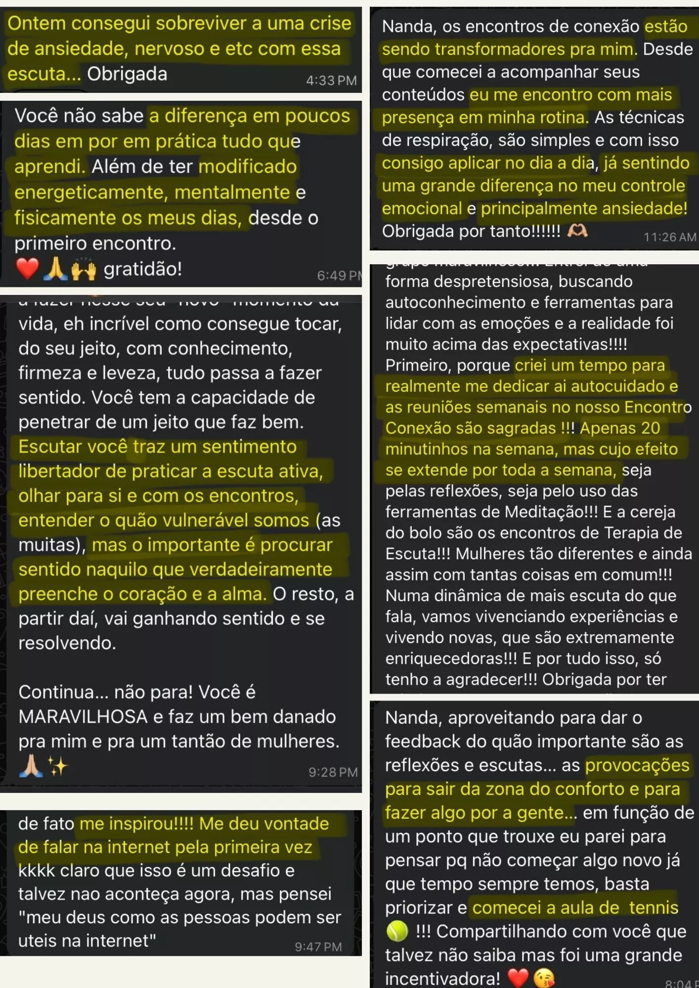 Você vai se sentir mais calma, com emoções equilibradas e uma conexão mais profunda consigo mesma. Muitas alunas relatam menos ansiedade, mais foco, e um novo olhar sobre a vida, com hábitos saudáveis e autoconfiança renovada.