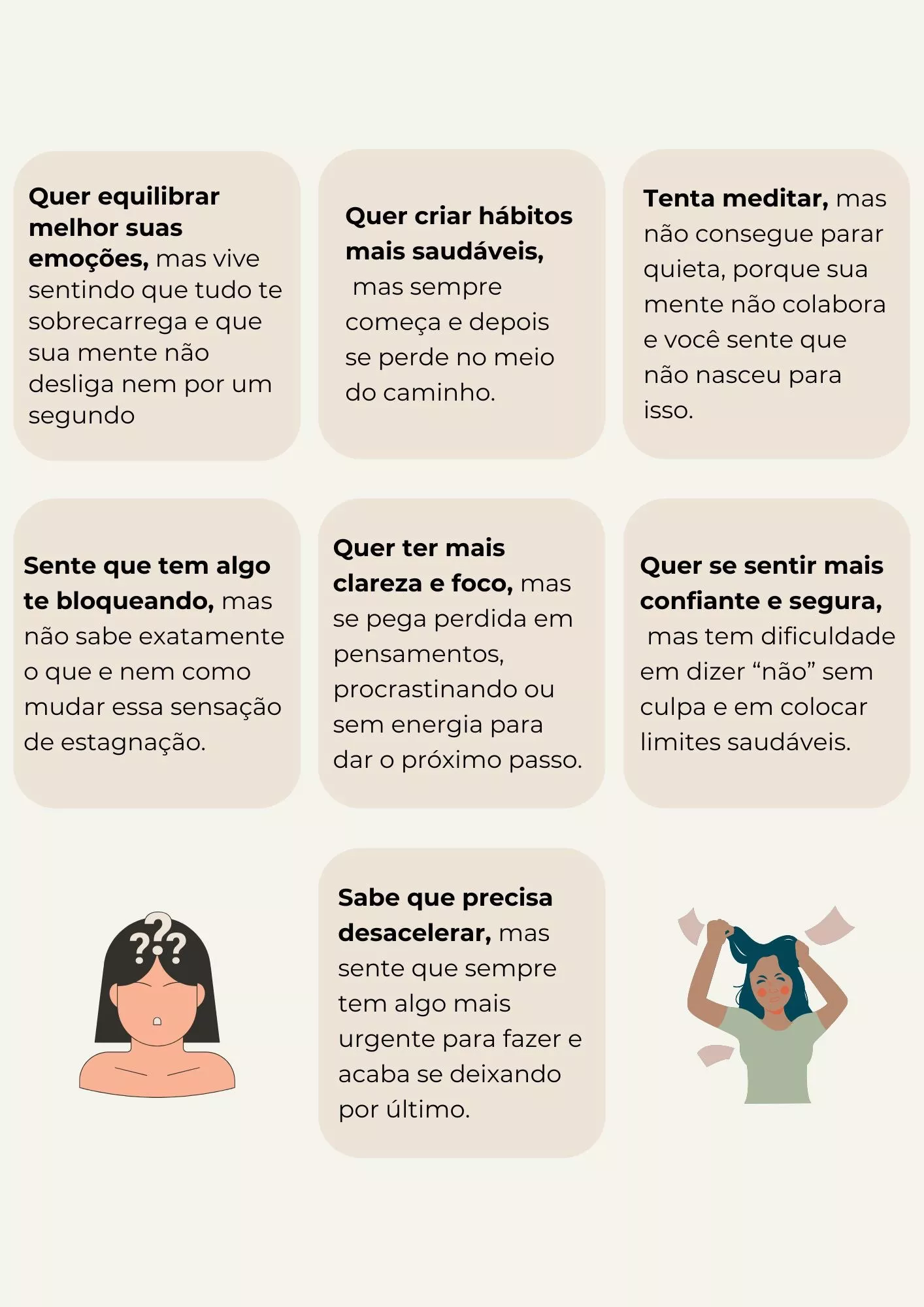 Se você sente que está sempre no piloto automático, que sua mente não desliga e que falta algo para viver com mais autenticidade, então esse programa pode ser exatamente o que você precisa. Ele foi pensado para mulheres que buscam um caminho mais leve e real de transformação